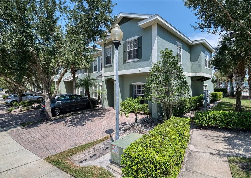 One or more photo(s) has been virtually staged. STEPS TO THE CLUBHOUSE. PARTIALLY FURNISHED (FEW ITEMS REMOVED). Enjoy moments of fun in this 5 Bedrooms townhome zoned for short term, in a gated community with a private Spa/Hot-tub at the back screened porch! Home features laminate and tile floors. This property can be used as a primary residence, a second home or an investment (long term and short term vacation rentals). Coral Cay Resort clubhouse features an arcade, business center, gym, billiard room, and theater, a spa tub, pool, kiddie pool, playground walking trail and more.