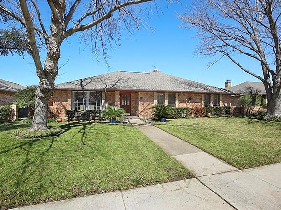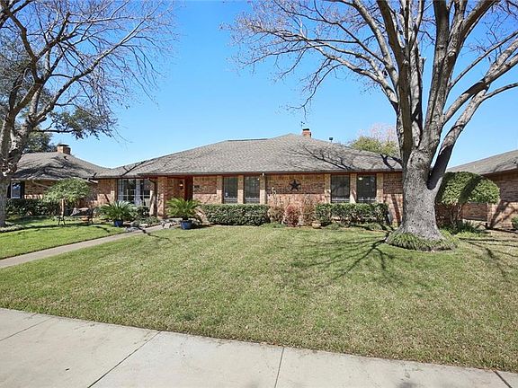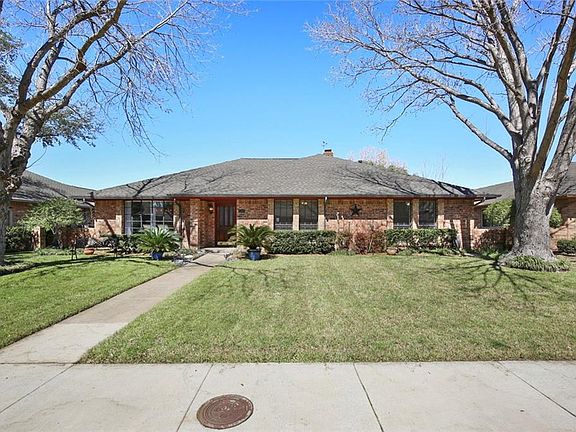 Sprawling single story ranch situated in established tree-lined community. Lush landscaping & mature trees welcome you to this beautiful move-in ready 4 bedroom, 2 bath home. A bright elegant FD area is highlighted by an oversized window & allows easy access to the kitchen. The warm & inviting LA offers a corner brick fireplace, wall of windows leading to the sun porch & wood beamed ceiling. The private master suite is tucked in the back of the home boasting his & her WIC's, a relaxing garden tub & separate shower. The private backyard oasis was made for hosting summer-time parties with a heated swimming pool, spa & extended patio. Don't miss the automatic gate drive + BOB fence! Updated HVAC System 2019.