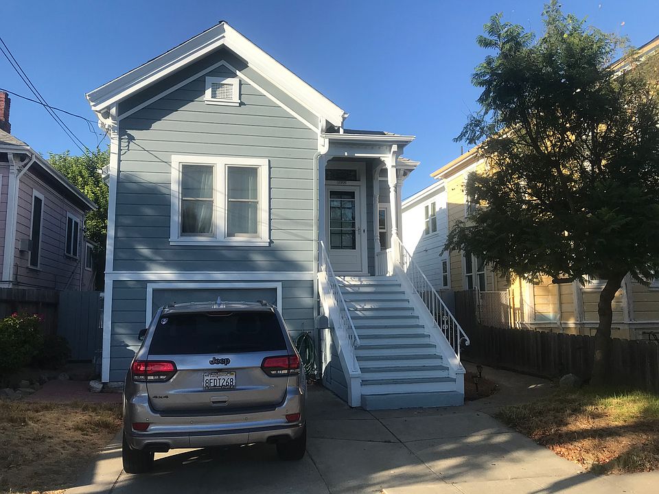 Recently renovated home available for rent in very desirable neighborhood. Listing is for the full property, which includes a 2BR/1BA main floor and a 1BA/1BA bottom floor - ideal for adult family members or a work-from-home environment. Dedicated in-unit laundry both upstairs and down. Enclosed back yard. Main unit has approx 12 stairs to the front door, downstairs unit has one step. Location is prime Alameda joy. You're a two-block walk to the beach, to the downtown stores and restaurants, to Trader Joe's, and to much more. Express bus to SF picks up near by, and you're a 10-15min bike ride to one of the Alameda ferries. No smoking, well behaved pets okay. Owner lives nearby and keeps some things in the garage but can be removed for the right renter.