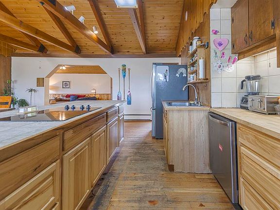 This one-of-a-kind property is set back from the main road, offering privacy, flexibility, and endless potential. The home is filled with natural sunlight and features vaulted ceilings with tongue-and-groove accents, and an abundance of windows that create a warm, inviting atmosphere. The open floor plan flows seamlessly from the kitchen into the dining area, then steps down into a spacious living room with vaulted ceilings, a wood stove, and access to the back deck and hot tub—perfect for relaxing and entertaining. Tucked just off the dining room, the newly remodeled primary suite offers a quiet and comfortable space to unwind. The bedroom fits a king-sized bed and includes an updated en suite bathroom featuring modern fixtures and finishes. Clean lines and thoughtful design give this suite a refreshed, contemporary feel, while its location on the main level provides easy access without sacrificing privacy. Down the hall from the kitchen, you’ll find access to a private side porch—an ideal spot for morning coffee or evening sunsets—followed by a second bedroom and full bathroom. On the opposite side of the kitchen is a fully updated bedroom and bathroom with a kitchenette and private entrance. Currently used as a short-term rental, this versatile space is ideal for guests, extended family, or even a home office or business. Above the living room, a loft with built-in bookshelves leads to a bright bedroom or office featuring high ceilings and windows, a closet, and access to unfinished attic storage. The 1,400+ square-foot barn/garage is a standout feature, with a concrete floor, wood stove, and a finished, climate-controlled section that’s perfect for a workshop, studio, or business use. Unfinished attic storage sits above, and covered bays on both sides offer protected space for vehicles, trailers, or recreational toys. A greenhouse supports year-round growing, and the property is fully outfitted for livestock with fenced pasture, water and electric, a loafing shed, and a history as a llama farm. Antelope Creek flows through the property, adding to the serene setting. To top it off, the property enjoys stunning 360-degree views of W Mountain, the San Juans, and the Anthracite Range—all with no covenants limiting how you use the land. Agricultural designation is already in place, helping to keep property taxes low while supporting a variety of lifestyle and business opportunities.