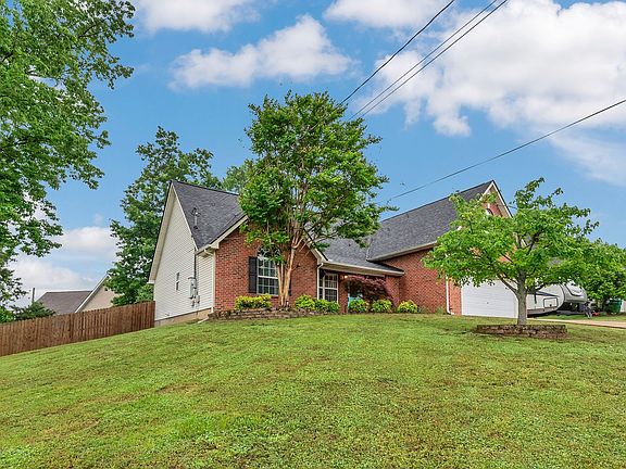 Tucked away on a generous .28 acre lot, this 3-bedroom, 2-bath home offers space, storage, and flexibility inside and out. The fully fenced backyard is a true standout—ideal for pets, play, and gatherings—with plenty of room to roam, a large storage building, and a backyard fire pit ready for evenings under the stars. The attached 2-car garage includes additional storage as well as added convenience. And the attic access offers even more storage, giving you room for everything from holiday décor to hobby gear. Inside, the smart layout includes a spacious living room with vaulted ceilings, rich LVP hardwood floors, and a cozy wood-burning fireplace. A large bonus room provides options for a home office, media room, or playroom. The kitchen features granite countertops, a tile backsplash, stainless steel appliances, farmhouse sink, and pantry—perfect for any home chef. The primary suite includes trey ceilings, a walk-in closet, and a spacious en-suite bath with a jetted tub and double vanities. The second full bath also features double sinks, adding extra convenience for guests or family. Enjoy your morning coffee on the covered front porch or unwind on the back patio while taking in the privacy and space this lot provides. With no HOA and quick access to Sam Ridley Parkway, I-24, shopping, dining, and schools, this property offers both freedom and function in a prime location.