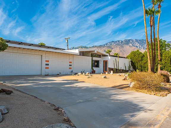 ANNUAL LEASE A Hugh Kaptur Desert Park Estates classic! Bright and playful Palm Springs retreat! This spacious home boasts a large private pool, spa, Bikes, oversized BBQ grill, and multiple outdoor lounges. Inside, enjoy vibrant mid-century decor, a game room with a pool table & arcade, XBOX, and a bunk room perfect for families. Don't forget your Tesla with the convenience of Level 2 charging at the property. Step into one of the largest 3-bedroom homes in the area, designed for unforgettable comfort. Hollywood Springs blends mid-century modern charm with vibrant pops of color, offering a stylish retreat perfect for family and friends. With 3 bedrooms, 2 bathrooms, and 5 beds, it comfortably sleeps up to 6 guests. The open-concept living space is bright and airy, with iconic mid-century furnishings, a smart TV, and sliding glass doors leading to the backyard oasis. The fully equipped kitchen makes it easy to prepare meals or cocktails, while the adjacent dining area invites everyone to gather and connect. For entertainment, head to the dedicated game room featuring a pool table, vintage arcade machine, and funky decor that's as Insta-worthy as it is fun. Outdoors, your private resort-style space awaits. Lounge by the sparkling pool, unwind in the soothing spa, or enjoy movie nights on the covered patio with its smart TV perfect for streaming your favorite shows while dining al fresco. The private yard also offers breathtaking mountain views and a grassy area ideal for kids and pets to play safely. Plus, with a Level 2 EV charger on site, you can recharge your vehicle as easily as you recharge yourself. Palm Springs, Hollywood Springs gives everyone plenty of room to relax and recharge. Whether you're lounging poolside, exploring nearby shops and restaurants, or enjoying game nights indoors, this home promises your own unforgettable desert getaway! Call now for more information and setup a private viewing. Owner pays for pool and yard maintenance.