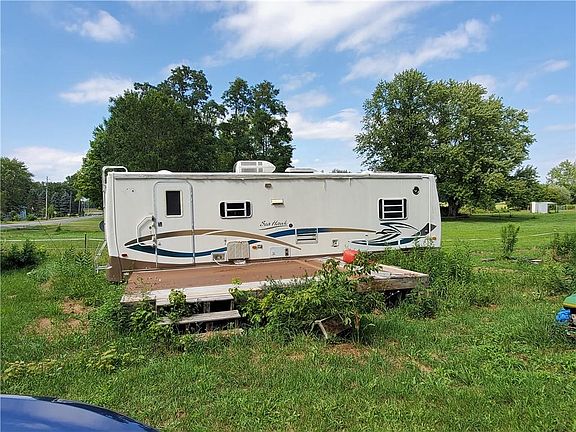 Over an acre lot with new electric service, well and septic! Long lot gives plenty of room to relax or entertain at your personal camp or future building site. Drive right up with your camper and relax on the deck overlooking your little vegetable garden. Plenty of room for running around, sitting around the campfire, playing lawn games or socially distant entertaining of family and friends. Close to the Casino, Outlet Mall, Geneva, Seneca and Cayuga Lakes. Launch your boat and enjoy the day on the Lake swimming, fishing, relaxing. Or travel along the wine,craft beer or cheese trails. Why pay to camp at a crowded campground when you can buy your own private camp with all of the amenities already installed?