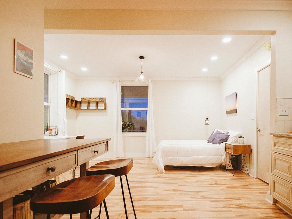Price includes all utilities. Walk or bike almost everywhere from this lovely renovated 1910 home. Only one mile from the hospital/downtown/campus - (steps away from Scott Stadium). Professionally designed interior with new floors, hand tiled bathrooms and marble tops, lots of natural light and sunshine. Kitchenette with induction cooktop (not full size oven - but large convection toaster and microwave). Laundry on site. Semi-furnished (or not, as needed). Mattress not included. Ample Parking. Shared large covered porch. House has 5 studios total in building. Price includes all costs: all utilities - laundry - 1-gig wifi - parking - trash pick up. One person capacity per unit. NOTE: kitchenettes offer simple cooking options - microwave/toaster oven/hotplates - not designed for stove/range cooking. Seeking quiet, clean young professionals/mature students. **Video tours available. Applicants must have good work/housing references and good credit score. 1 year - or short term for travel nurses. INCLUDES ALL UTILITIES: trash, water, all utilities, and wifi