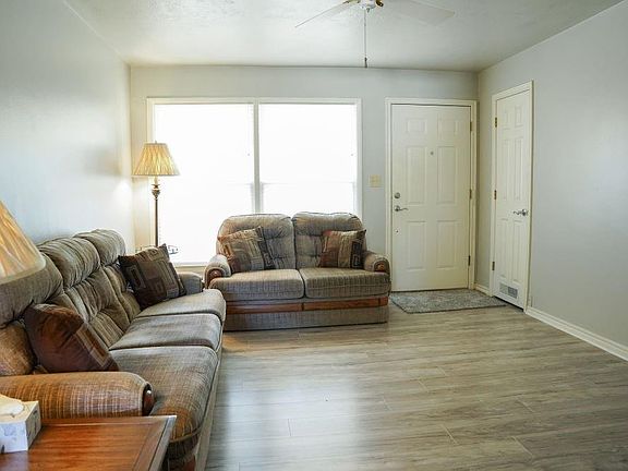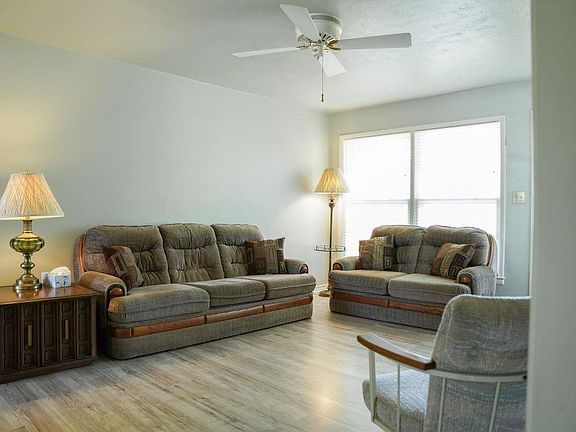 Come, see this attractive 3 bed, well-kept home! New flooring and new paint. Newer updates in the bathroom, and the kitchen has newer lovely, good grain cabinets, and a brand-new stove/oven. This home features a large, underground storm shelter, with a security light illuminating the backyard. The driveway is extra wide, accommodating 2 vehicles side by side. This is in an established, friendly neighborhood. *Agent is related the sellers.
