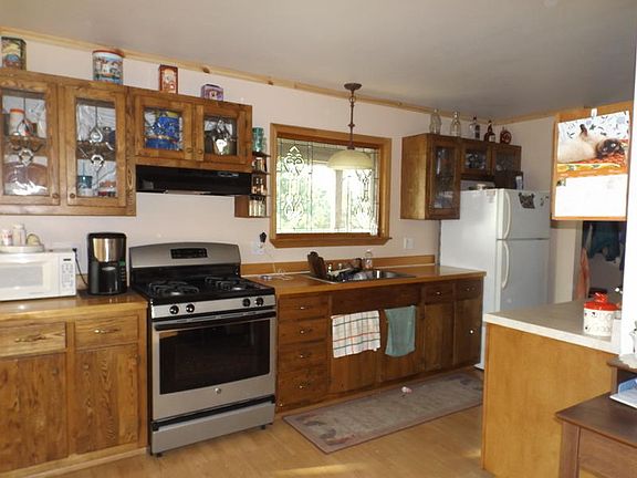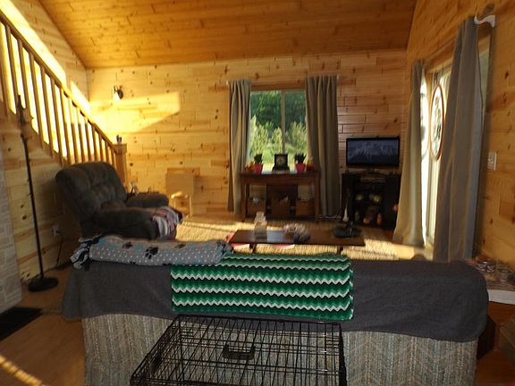 Beautiful Views home sits on a hill, very private setting, 40 acres of hardwoods with trails throughout. No maintenance Vinyl imitation log siding. Walk out basement. Wrap around deck, also a upper level deck. 2 detached garages