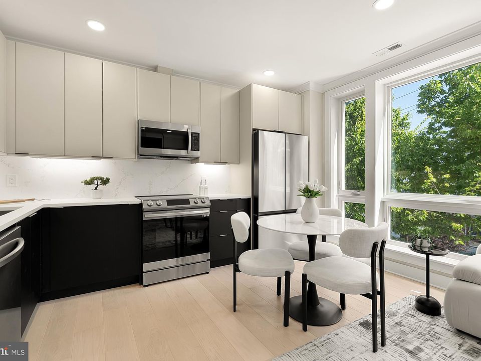 Brand new luxury residences situated by the river, where your home strikes a balance between urban living and natural serenity. Wake up to the tranquility of the water and lush greenery, creating an oasis in the midst of the city. This unique environment offers a practical recharge, contributing to improved well-being and career performance. Your residence at The Rivière isn't just a place to live; it's a strategic base for thriving in both personal and professional aspects of life. The design features at The Rivière spare no details such as the Calcatta Quartz countertops throughout the house, including bathrooms and full height backsplash, Samsung Series appliance package with 800 series 36-inch industrial range, and 9-inch wide distressed oak engineered hardwood floors. Control your home seamlessly through your Nest Thermostats as well as Hardwired internet throughout. Our bathrooms feature frameless glass doors in showers and bathtubs, and a wall-to-wall designer tile package. This location provides instant access to key DC routes: 1-295, 1-395, BWI Parkway,