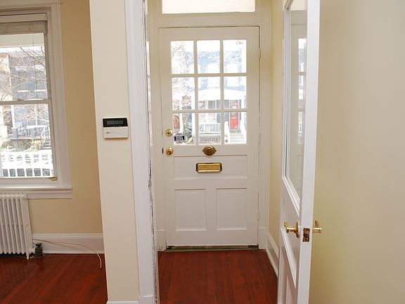 Charming row-house w/ so much character. NEWER gourmet granite/ stainless kitchen w/exposed brick walls + breakfast rm. Spacious LR. Captivating DR w/ built-in corner cabinet. Gorgeous wood flrs. 2 BR & 2 full BA's (1 w/ claw tub) on upper level. Great LL w/ sep. entrance, FB, sauna, & FR (or 3rd BR) w/ exposed brick walls. Private rear patio and sitting porch. 1 car garage! 1 mile metro! A winner
