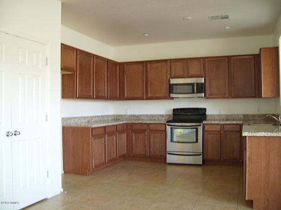 3 Bedroom and 2 full baths- A very large great room with open concept, dining room with bay window, large kitchen with granite counters, stainless steel appliances,(dishwasher, range and built in microwave) large pantry, nice sized laundry room, master bedroom walk-in closet, bathroom with water closet and double sinks. Flooring, tile in all the right places and carpet in living area and bedrooms. 2 car garage with remote openers. RV gate and fenced yard. Sellers holds Arizona Real Estate Licenses