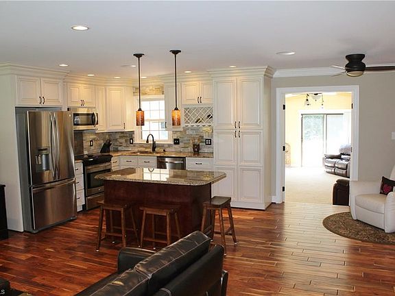Kernersville 3br Ranch shows like a model! Updated kitchen, Marsh cabinets, granite countertops, tile backsplash, undercounter sink, undercabinet lighting, new fixtures, recessed lighting, stainless steel Kenmore Elite appliances. Wet bar. All new hardwood flooring. Crown trim & speakers throughout. Baths have new vanities w/granite tops, tile floors, cultured marble shower. Some new replacement windows. Inground pool, large covered brick patio, front porch. Over 1 acre. 100% USDA financing available!