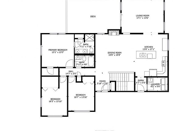 It is time to invite & gather with family and friends in this home. Opening the door you are greeted with the warmth of the hickory floors and cozy fireplace with the custom mantle. The openness & vaulted ceiling of the kitchen/dining flows into the family room. The abundance of southeast sunlight flows through this home. The ranch home has a primary suite and two additional bedrooms and another bath on the main floor. Laundry room is located on the main floor. 3 car garage with over 850 sq. ft. Low to no maintenance on the deck. Professional landscape surrounds the home. Entertaining continues in the lower level. Offers a custom bar, cabinets & shelving, sink and full size refrigerator. Hang out at the bar...enough room for 8+. Great place to escape and cheer on your favorite team. Also included a full bath on the LL. You have enough room to convert some extra space to a 4th bedroom. Come and check out this lovely, well maintained, 2,800 sq.ft home near Linn Grove Elementary School in Marion.