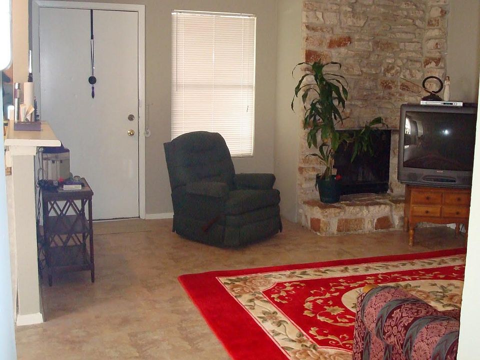 Light and airy. Garden Window, private patio, stone fireplace, full size washer & dryer hookups with gas and electric. No carpet. Porcelain tile throughout. Well maintained. Google Fiber available. Storage unit. Down stairs unit. Please Call to set up viewing. Tenant responsible for utilities.