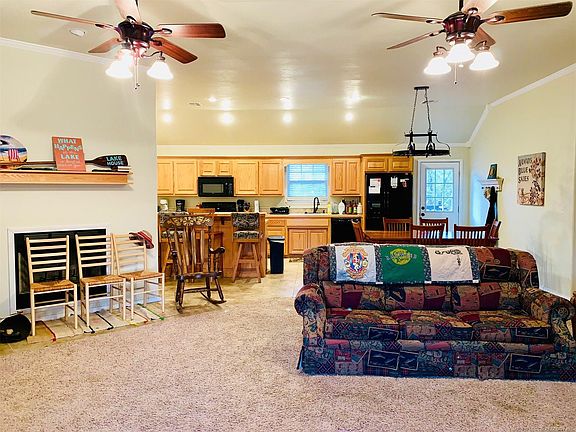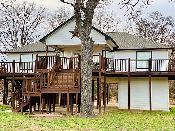 This unique, one-owner home is located in a golf cart friendly subdivision just a few blocks from some of the sandiest beaches on Lake Texoma. The home features an open floor plan with vaulted ceilings. Underneath the tree house design is a large patio area with a bar, 3/4 bath, tool shed storage, outdoor lake shower, and porch swing. On the adjoining additional lot is a 30' x 50' insulated shop building with drive-thru overhead doors, making it ideal for storing your boats, RV, and personal watercraft.