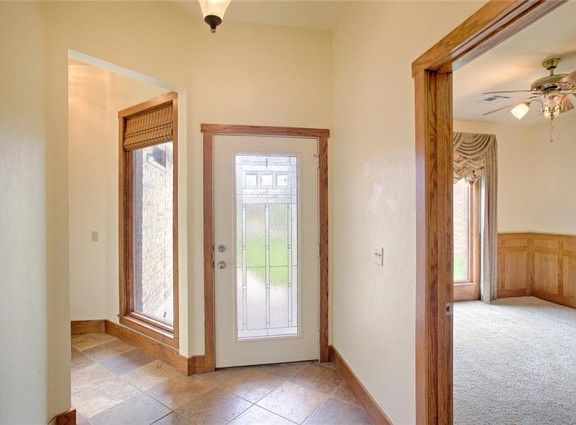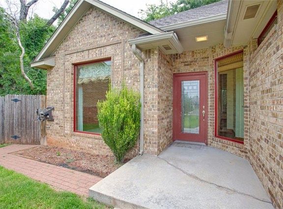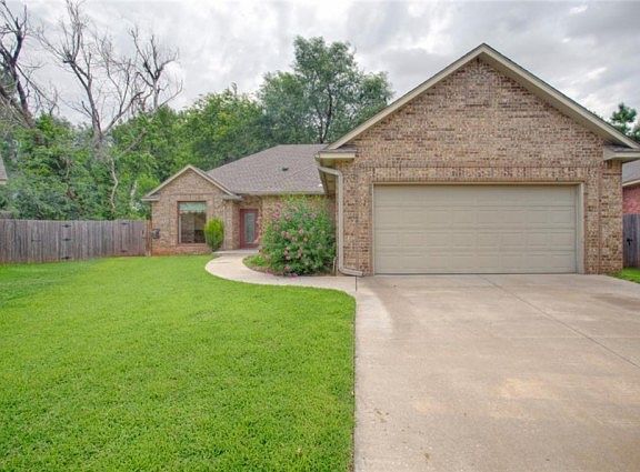 Enjoy this lovely home in a quiet, low traffic Norman neighborhood with Adkins Park across the street and the Trails Golf Club moments away. Open floor plan with a spacious study upon entry, comfortable living area offering a corner fireplace w/gas logs, looking out onto a covered patio and tree shaded backyard. The center of the home is the bright kitchen with solid surface counter tops, smooth top stove with a view & transitional stainless vent hood! Kitchen island and lots of counter top space and storage. Roomy master bedroom with recessed area for large TV. Master bath offers a dual sink top, jetted tub, separate shower and walk-in closet. Secondary bedrooms are nice sized with plenty of closet space, all high ceilings throughout. Quality wood interior doors, custom cabinetry and wainscoting in study.