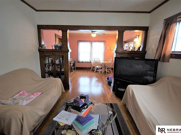Incredible woodwork throughout this home! Hardwood floors, built in cabinets, ornate fixtures. Access to home available off the alley. A tall block garage foundation is there, just needs a roof. Basement has started to be finished. Nice enclosed porch in the front. Spacious fully fenced backyard. Lots of character! All measurements approximate.