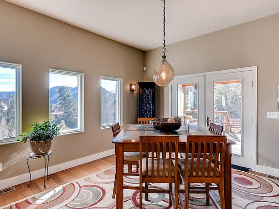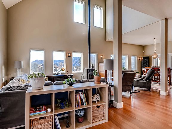Stunning mountain home with expansive 360° mountain views with easy access to I-70, Evergreen, Red Rocks and Downtown Denver! Open floorplan featuring vaulted ceilings, wood burning stove and hardwood floors. Eat-in gourmet kitchen with professional appliances. Sweeping views from your master suite with updated 5-piece bath and walk-in closet! Finished basement great for guests with separate entrance, kitchen, living area w/ fireplace and full bath. Central vacuum on all levels. Fully secured with key pad entry. Private back yard with heated covered deck ensures year-round enjoyment of this 2.12 acre property. Property includes dog run, green house and utility shed.