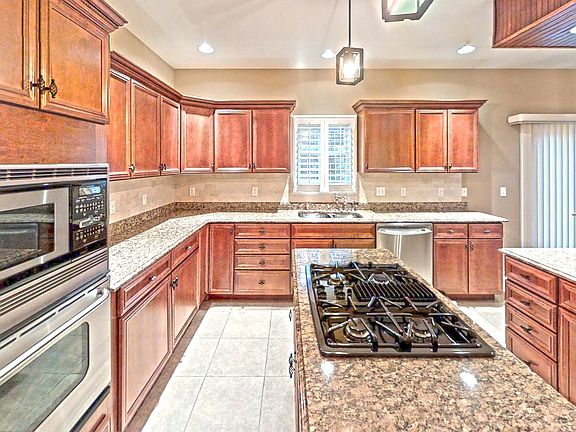 $2,000 towards Taxes or Closing cost with offer. Motivated Seller. Luxurious living in this 2 story home with a finished basement, in a golf course community. Main floor boasts a 2 story great room highlighted w/gas fireplace, and lots of natural light. Enjoy cooking in the upscale kitchen w/ tile back splash, stainless appliances, granite counters & abundant storage, with formal dining room nearby. Immaculately maintained fenced backyard, perfect for outdoor living w/over sized patio, cedar pergola and mature, and sprinkler system. Relax in the 1st floor master w/a luxurious bath including whirlpool, dual vanities & walk in closet w/custom California Closet built-ins. 2nd floor has 2 bedroom suites and 4th bedroom. Finished basement offers a theater area, wet bar & bedroom and office or 6th bedroom option. Unfinished storage space perfect for future wine cellar. Great storage throughout. 1st floor laundry/mud room accesses 3 car garage. Check out the 3D Virtual Tour!