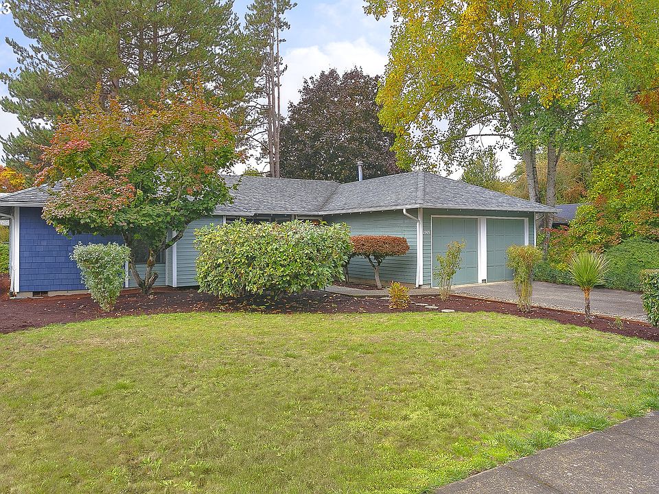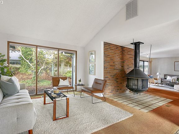 Discover your dream home in this lovely one-level, one-owner ranch nestled in a tranquil, established neighborhood. With mature landscaping and an easy-flow layout, this residence offers the perfect blend of comfort and style. The vaulted living room ceiling, exposed beams and a suspended fireplace infuse the space with a playful retro vibe, making it an ideal spot to unwind or entertain. Adjacent is a separate dining room for casual or formal gatherings. The well-appointed kitchen boasts a gas range, fridge, dishwasher, ample countertop space and a convenient breakfast bar for quick meals. The cozy family room features sliders that lead to a back patio and a spacious yard, providing the perfect spot for outdoor entertaining. Enjoy the convenience of an en suite bath in the delightful primary suite, along with a spacious walk-in closet and sliders that open to a second back patio area. Two additional bedrooms and another full bathroom will make morning routines a breeze. A generous 2-car garage offers parking and storage options. Recent upgrades include fresh exterior paint, new kitchen lighting, an updated exterior light fixture and new siding on the south side of the house. The home has easy access to TV Hwy, close proximity to Nike, Intel, Costco and Fred Meyer. Don't miss out on this fantastic home! Your new light-filled retreat awaits.