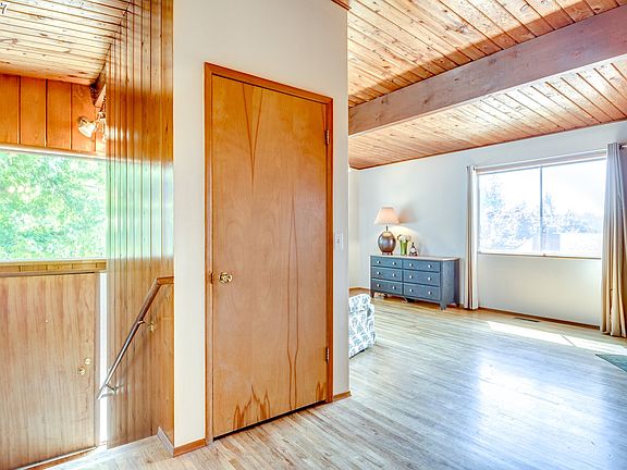 Portland home just minutes away from restaurants and shopping! This split level home has a downstairs level that would be great for separate living quarters! Nice sized deck and fenced backyard. Wood ceilings and beams throughout main living space and a wood burning fireplace.