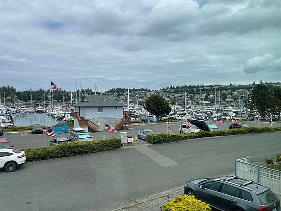 Features include: Kitchen w/ eating counter, granite counter tops, stainless appliances, dining area w/ wet bar, & living room w/ access to patio. Primary bedroom w/ loft area & double vanity in bath. All rooms with water views. Guest bedroom w/ view of marina. One car garage. New windows, carpet, paint, & more! Includes all appliances. No smoking/pets.