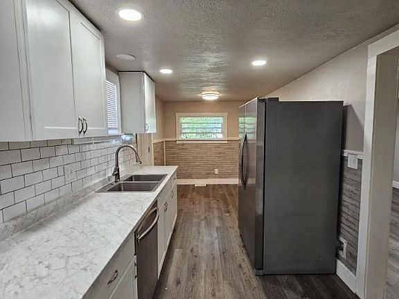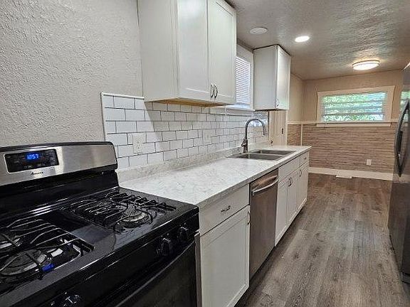 CUTE! CUTE! CUTE! GREAT CURB APPEAL, NEW LAMINATE FLOOR COVERINGS, VINYL WINDOWS, CABINETS, GRANITE, BACK SPLASH, PAINT, FIXTURES, HARDWARE, TILE SHOWER, RECESSED LIGHTING, CUSTOM BLINDS, STAINLESS APPLIANCES TO INCLUDE A GAS STOVE, COZY EATING SPACE, NEWER FURNACE AND WATER HEATER, XERISCAPED FRONT YARD, ATTACHED CARPORT, PLENTY OF SPACE FOR AN RV, TRAILER, OR BOAT, AND A REALLY BIG OUTBUILDING WITH ALLEY ACCESS THAT COULD BE CONVERTED TO A GARAGE OR USED AS A WORKSHOP, STORAGE, HOBBY SPACE, ETC.