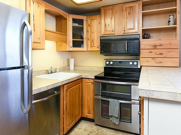 Cute Ski-in and Ski-Out 2 bed, 2 bath updated corner condo at Storm Meadows Club C. A wraparound patio is great for pet owners who want ground level access and for those who desire the privacy of an end unit. Sliding glass doors bring in an abundance of natural light, as well as views of Emerald Mountain from your dining room. Or sit on the patio and take in the views of the ski area and south valley. Upgrades include an en suite master bath with beautifully remodeled walk in shower and heated floor, an updated kitchen with tile counter top, newer cabinets and appliances (including a double oven), and newer carpet. Cozy up to the wood burning fireplace after a full day of skiing or hiking, or head to the hot tub. The club amenities include tennis courts, fitness room, outdoor heated swimming pool, outdoor hot tub, private ski locker and seasonal shuttle to ski base area, restaurants and shops. The ski area is your playground year round - just step outside and onto the trails!
