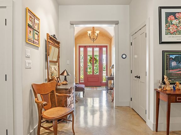 Experience refined living in this Durst-built custom home where craftsmanship meets fantastic views. This exceptional beautifully designed residence is a true retreat for master gardeners and entertainers alike. The split, open-concept floor plan features a spacious great room with a slate-faced gas fireplace, media wall, and specialty lighting—perfect for gatherings or cozy evenings at home. Joining is the chef's kitchen shining with Bosch appliances, custom Kingwood cabinetry, a granite eat-at island, and rich Texas pecan countertops. Seamlessly joining the kitchen is a dining room with large windows to capitalize on the views. A private primary suite offers a spa-like bath complete with a large walk-in shower and dual sinks set in granite and a huge walk-in closet. On the opposite side of the house are two bedrooms which share a hall bathroom offering an over-sized shower. The fourth bedroom, currently used as an office, adds flexibility for work or guests. Throughout the home, you'll find striking Element 7 concrete floors, high ceilings and abundant storage to keep everything organized and within reach. Conveniently located near the primary bedroom is a generous utility room with leather finished granite counters. The property boasts expansive garden beds, native landscaping, a water catchment system and thoughtfully designed xeriscaping, creating a low-maintenance yet lush outdoor environment. A charming greenhouse/ potting cottage complete with water and electricity, a spacious screened room across the back of the home overlooking the backyard, and the stone walkways and seating areas make this a haven for both gardeners and those who simply enjoy relaxing in nature. The back yard is enclosed with custom iron fencing and decorative gates. Don't let this one slip away.