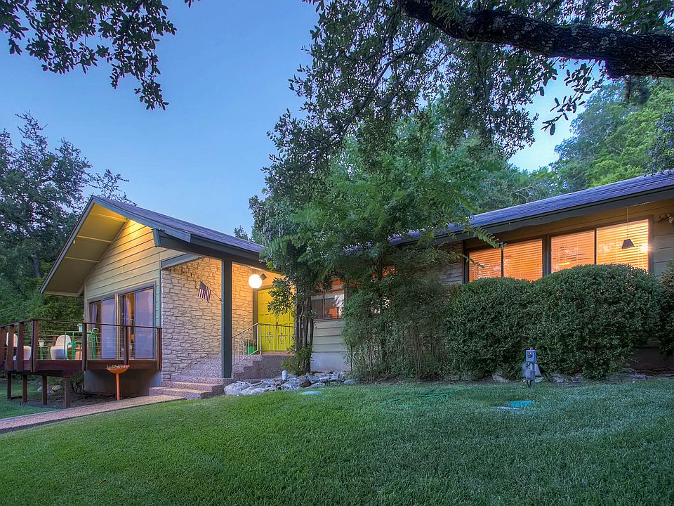 Sprawling, mid-century ranch style home on half acre corner lot nestled among mature trees in beautiful hills of Westlake. Great home to entertain with a secluded swimming pool and private deck that extends full length of the house. A custom designed front deck made from Ipe wood is perfect for morning coffee and beautiful Texas Sunsets. Recently updated throughout with gorgeous bamboo flooring, custom interior doors and recessed lighting. Spacious bedrooms with walk in closets. Updated kitchen too!
