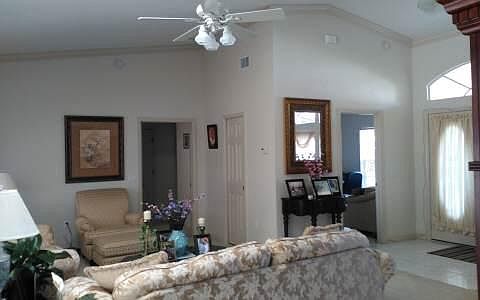 Beautiful home with vaulted ceilings, crown molding and manicured yard with well irrigation system.The 1/2 bath is placed so it can be used from the living room and the office/4th bedroom. Master Suite has a formal entry way to the large walk in closet and master bath that has jacuzzi tub and walk in shower. Very well thought out floor plan, custom built one owner home in excellent condition