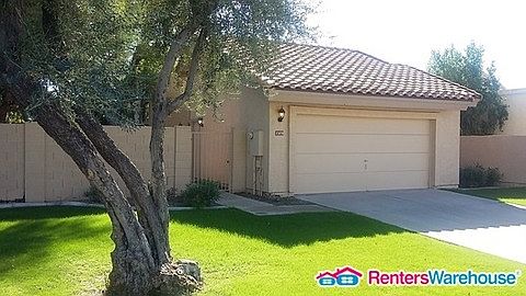 Conveniently located off Elliott and the 101 S in Desirable Heather Brook Subdivision! End unit with a beautiful private yard. This home is bright and roomy with beautiful views from all windows. Living-Dining combination with wood burning fireplace and access to a side patio. Kitchen has all appliances and lots of cabinets for storage. Split floor plan with 2 bedrooms, laundry and a full bath in the front of the house plus a large private master suite on the opposite side w/ a roomy bath, dual vanities and access to another patio and garden. Grass, brick paver's and mature trees create a private retreat. Front landscaping is maintained by HOA- also enjoy a sparkling pool and tennis courts right around the corner. Sorry no pets accepted. Priced at 1450.00 + rental tax. Deposit is 1450.00, applications are 55.00 per occupant 18 +yo and 1 time lease admin fee of 150.00. Hurry don't delay schedule a showing today at 480-462-6683, this beautiful home will not be available for long!