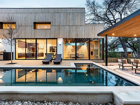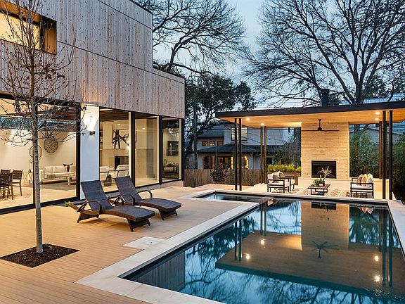 Experience resort-style living at 2305 Westover, an exquisite new design by the award-winning Joseph Design Build. Located in serene Tarrytown, this modern residence combines sleek design with the ultimate in indoor-outdoor living. Enjoy custom walnut cabinetry, warm wood accents, and three custom-built fireplaces. Floor-to-ceiling windows illuminate the space and provide panoramic views of the luxurious outdoor area featuring a wraparound deck, pool, hot tub, and open-air cabana. Ensuring privacy, the space is enclosed by a six-foot cedar fence. The upper level offers private quarters, a flexible den, and a spacious office. Premium amenities include a two-car garage, Wolf/SubZero appliances, a spa-like primary suite, an oversized California closet, a smart thermostat, and unparalleled finishes throughout.