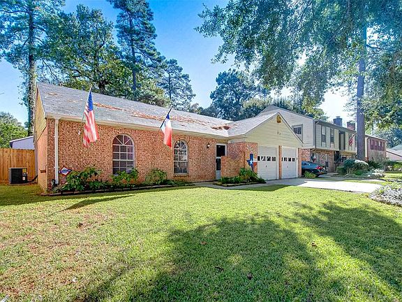 Great opportunity! Well maintained one story on spacious lot with lush greenery and mature trees. Ready for your personal style! Spacious family room with high ceilings and cozy fireplace. Kitchen with attached dining and backyard views. Master with attached bathroom. Spacious secondary bedrooms. Recent Carpet. Recent HVAC. Recent roof. Recent driveway. Floored attic areas. All electric ??? no gas. Two sheds. Large insulated shed with AC, perfect for workshop or man cave. Spacious backyard with covered patio and plenty of green space for children to play. Did not flood in Harvey.
