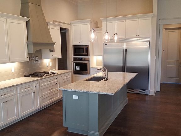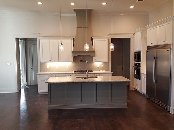 This Custom Home offers 4 bedrooms, 3 full bathrooms, and a large front entry 2 car garage. Home overlooks 3 acres of green space and 2 ponds. The interior features family room that flows into kitchen with custom cabinets, large island, built in refrigerator & Freezer, Built in oven and microwave, all stainless steel appliances, and 3 cm granite counter tops. The large family room has a 14' high ceiling, and a gas fireplace. The exterior includes brick & stucco, gutters across the front and side. Front and Back porches have brick flooring. Enjoy your gas outdoor kitchen and fireplace on the back porch. Yard completely landscaped with sprinkler system and backyard fence. Home has smart technology. Besides having excellent school district the taxes are $1,200 less annually than St. Tammany Parish. Square footage is 2400 living, 3295 under beam. "Realtors Welcome"