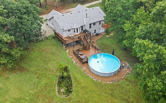Neat as a pin & MOVE IN READY! This one has something for everyone! 3500+- sq ft ranch settled on 5+ acres private setting. Pool w/2 custom decks, new 38x28 outbuilding & finished lower level! Large living room features custom stone front woodburning fireplace, vaulted ceiling, open concept to formal dining & kitchen w/ center island, 36" hickory cabinets, walk in pantry w/outlets for your small appliances. Main floor laundry. Huge primary suite offers private deck, luxury bath w/soaker tub & sep. shower, massive walk in closet. Finished lower level features huge rec room, water & electric for your future bar, surround sound, office w/egress window, full bath, tons of storage with direct outside access & walks out to back yard oasis/deck to pool. Large detached building is fully insulated, tons of electric, concrete & overhead door. Check out the walking path to natures get away amongst the trees. 2 year old roof, fully finished 2 car garage, central vac, dual water heaters and more!