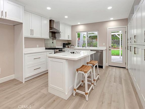 REMODELED Beautiful Single family, single story, detached home - NEW paint - all inside and all outside, NEW luxury vinyl plank flooring, NEW baseboards, NEW recessed lighting throughout, new fireplace surround (over the brick), NEW custom KITCHEN, pots and pans drawers, pull-out spice cabinet rack, LOTS of NEW storage, NEW stove, NEW dishwasher, NEW range hood, NEW center breakfast island with more storage, NEW TUB bathroom, NEW walk-in SHOWER BATHROOM, NEW toilets and NEW vanities and sinks and fixtures, NEW pavers on patio - lovely patio cover, NEW landscaping, NEW drip system, NEW EPOXY-COATED garage floor, lots of upgrades and storage!! This home has received beautiful finishes - lives comfortably on an over 9500 square foot lot with attached, direct access 2-car garage. Back yard goes up the hill - so nice! The HOA with this property belongs to the Lake Mission Viejo! Dues is $179 twice a year - check out LakeMissionViejo.org - Fabulous amenities and lots of entertainment at The Lake! ONE LEVEL HOME - perfect for anyone/everyone!