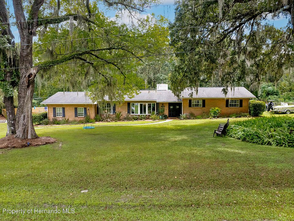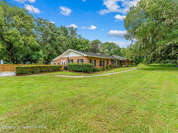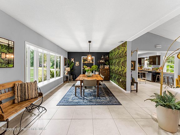 Welcome to this stunning family friendly, mid-century gem. Built in 1972 and nestled on nearly an acre of serene land just minutes from downtown Brooksville. This four-bedroom, three-bath home radiates character and charm with unique architectural details true to its era. Inside, you'll find a spacious layout perfect for both entertaining and everyday living, with large windows flooding the space with natural light.