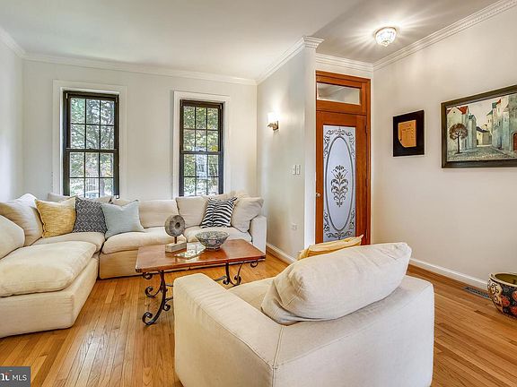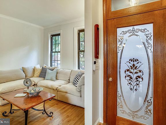 A gorgeous Victorian town home nestled on a quiet, tree-lined street in the Adams Morgan/Meridian Hill neighborhood; steps from the historic John Russell Pope designed mansions. Walking distance to Meridian Hill park, dining,retail and metro. The meticulously maintained home has 3 freshly painted finished levels, wood floors through out and crown molding in the living room & dining room, all with plenty of light. Main entrance has lovely outer and inner etched glass door. As you enter, the wood burning fireplace will greet you and the separate living and dining room are spacious. The first-floor half-bath has been updated and the gourmet kitchen with table space has been totally renovated with high end appliances, two ovens, one is a "Capital", the other a "Miele" microwave & oven; the refrigerator is a "fisher paykel", pantry and quartz counter tops. The sunny kitchen has an entrance to the large deck, lower-level patio and 1 car garage. Garage has electric service, perfect for future electric car charging station. Also "Additional parking can be rented from private owners steps away at Meridian Crescent." The upper-level owner's suite is over-sized and has been freshly painted and the newly renovated full bath is a must -see! Cathedral ceiling, ceiling fan, huge closet all makes for a good night's sleep. In the hall there is another newly renovated full bath, 2nd rear bedroom or an in-home office with an incredible western cityscape view. Lower level is completely finished with family room ,recently renovated full bath, laundry, storage room, and bedroom with two windows and spacious closet. There are two private entrances to the outside, one with access to the lower patio. Find yourself taking a short walk to Harris Teeter or the legendary 18th Street restaurant row with many of the hottest bars and eateries in the District.