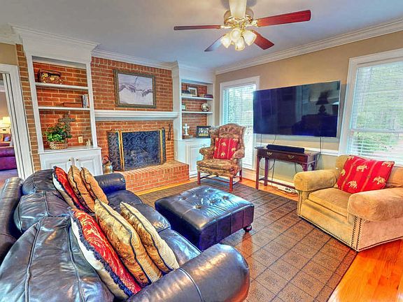 Don't miss this rare opportunity to own one of the best homes in Spring Valley! Located on a wonderful street and on a large very private wooded lot, this beautiful home has room for anything! The main floor has a flowing plan that boasts a large eat-in kitchen with an island and bar. The kitchen opens to a sitting area which combined with the eat-in area makes a wonderful gathering and entertaining space. Just off of the sitting area is a cozy room that has a full bathroom attached and wet bar. This room could be used as an additional family room, an office, or even a guest suite. Also off of the kitchen and great room is the large utility room with laundry and a sink. Through the utility room is a HUGE enclosed garage with very high ceilings and a kitchenette. This awesome room is perfect for a pool table, movie theater or any number of things. Off of this room is also a great storage room/workshop. On the other side of the home are a formal living room and dining room with french doors onto the sun room. Through the formal living room is the large owner's suite with a large walk-in closet, a door to the sunroom, and a large bathroom with whirlpool tub, separate shower, dual vanities and make-up vanity. Upstairs you will find 4 additional bedrooms - 1 with it's own private en-suite bathroom and 3 with their own sinks to minimize morning prep time! Outside there is a large deck, and pool that overlook Spring Valley #2 fairway and pond! Come see this wonderful home!