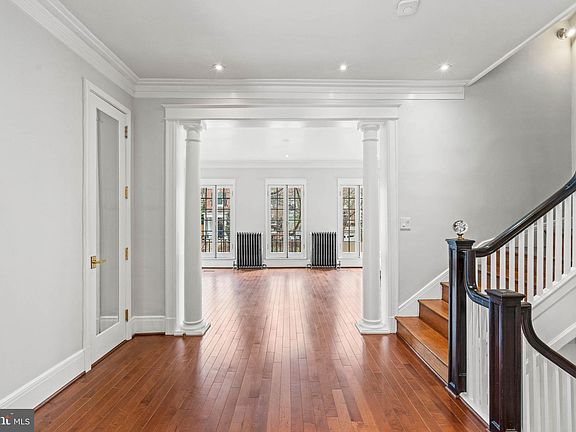 This stately residence was built circa 1917 and recently renovated throughout. The home encompasses over 4,600 square feet of interior living space with generously-scaled formal entertaining rooms, as well a comfortable family living spaces. The four-story townhouse features a traditional brick façade accented with limestone, offering a glimpse of the timeless elegance that lies within. The floorplan has been thoughtfully expanded and meticulously updated to incorporate attractive finishes, with the added benefit of an elevator servicing all levels. The gracious foyer is adorned with sophisticated plaster walls, elegant moldings and trim setting the tone for the home’s timeless design. This space flows effortlessly into a first-level library or office, which features expansive built-in shelving, a fireplace and a sleek glass sliding door that allows for natural light to fill the room. This level also includes a stylish modern kitchenette, a convenient powder room, and plenty of closet space for added functionality. There is also easy access to the attached one-car garage and a side entrance to the rear of the property from this floor. The grandeur of the home continues with a beautiful staircase that ascends to the Italian inspired “Piano Nobile” style formal living room located on the second floor of the residence. This generously-sized room boasts high ceilings, a marble fireplace, and is illuminated by three oversized windows. Original architectural details enhance the room’s character, adding timeless character to its modern updates. The gracious dining room, ideally situated adjacent to the gourmet kitchen, sets the stage for refined gatherings. The well-appointed kitchen has been beautifully updated to include high-end appliances and extensive cabinetry. It seamlessly transitions to a wrap-around deck—perfect for al fresco dining and outdoor entertaining. The expansive primary suite, located on the third floor, offers a luxurious retreat with generous proportions and thoughtful features, including custom built-ins, a walk-in closet, and an additional sliding-door closet. The suite is complemented by a large bathroom which connects to a private office and adjoining exercise room. The adjacent laundry room adds practicality and ease, completing this floor. The fourth level has three thoughtfully designed bedrooms, with the largest offering an elegant en-suite bathroom. The other two bedrooms are spacious and share easy access to a beautifully appointed hall bathroom. The third bedroom also offers a private deck, creating a peaceful outdoor retreat. This distinguished residence is amongst many ambassadorial homes and many of the District's most historically and architecturally significant properties. It is centrally located and is walking distance to Georgetown, Rock Creek Park, and the White House. This home is an exceptional offering in the heart of Kalorama.