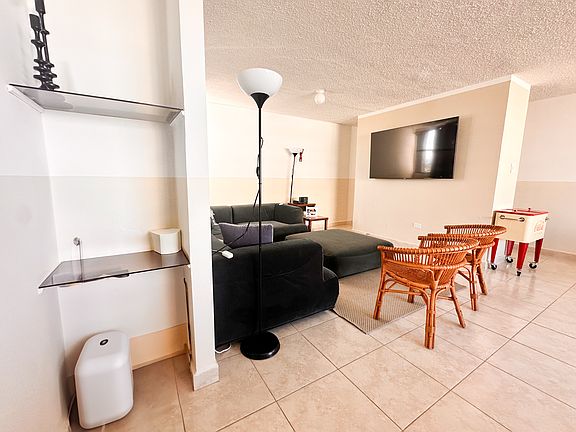 Experience Beachside Living in Punta Las Marias Nestled at the entrance of the exclusive Punta Las Marias neighborhood, this 4th-floor apartment is just one block from the beach, offering breathtaking views of The Reefs and Ultimo Trolley Beach. Ultimo Trolley Beach is celebrated for its tranquil vibe, panoramic views, and diverse activities such as surfing, paddleboarding, and kiteboarding. It's a hidden gem for those seeking a laid-back alternative to the bustling nearby beaches of Ocean Park and Isla Verde, making it a favorite among locals and visitors alike. This thoughtfully designed two-bedroom, two-bathroom unit features: Spacious Master Suite: Includes a private en-suite bathroom. Versatile Second Bedroom: Furnished with two twin beds that can be joined to create a king-size bed, offering flexibility for guests or family. Modern Amenities: A fully equipped kitchen with an in-unit washer and dryer, air conditioning, and a water heater for ultimate convenience. Open Living Area: Styled with a minimalist aesthetic, perfect for relaxation or entertaining. The building offers additional perks, including a pool and a common-area power generator for uninterrupted comfort. Whether you're looking for a serene retreat or an activity-filled beachside lifestyle, this apartment delivers it all in one of San Juan's most sought-after locations. Owner pays for water and cable. Renter is responsible for electric. No smoking allowed.