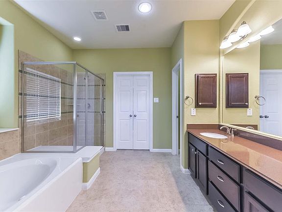 THIS IS IT! Upgrade your lifestyle...this is your chance to live in a former model home on a park-front lot with fantastic covered outdoor space and cozy outdoor gas log fireplace! Live the life you've dreamed of in a home with upgrades galore, including tile flooring, custom paint, granite countertops, stainless appliances, whirlpool tub, oversized master closet, and so much more! Make your life better by saving money on electricity costs with the energy efficient spray foam insulation; make your life easier and keep your yard looking great with the automatic sprinkler system. Enjoy the neighborhood amenities, including the lakeside pool. Don't miss your chance to live your best life in this incredible home...make your appointment to see it today!