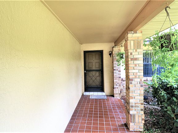 You will feel right at home with this traditional brick-trimmed screened pool home! Ceramic entrance foyer leads to bright, open greatroom/diningroom combination with cathedral ceilings and a spacious kitchen with serving bar, bay window breakfast nook, generous pantry. Ideal split bedroom plan...all bedrooms with ceiling fans...two bedrooms with large walk-in closets. Guest bath is pool planned. Master bath has marble vanity. Tranquil Florida living at it's best is apparent in the fully-fenced backyard, covered, tiled lanai with fan, and sparkling, pool with Pebble-tech surface and automatic pool sweep. Conveniently located a short walk to Clay Springs Elementary and shopping of all kinds around the corner. Move right in and get ready to enjoy your summers by the pool!