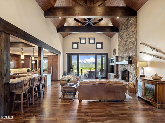 Experience the pinnacle of mountain luxury living at Red Ledges, where every detail of this magnificent 4-bedroom, 4-bathroom retreat has been meticulously designed to exceed your expectations. Nestled within the breathtaking beauty of Heber Valley, this expansive 4532 square foot residence spans two levels and offers unparalleled views of the surrounding mountains and valleys. Step inside to discover a chef's dream kitchen, featuring top-of-the-line Thermador appliances, granite countertops, and custom hardwood cabinets. Entertain with ease in the spacious great room, complete with vaulted tongue-and-groove wood ceilings, wood beams, and a striking wood-burning stone fireplace. Luxury abounds throughout, with acacia hardwood floors, plush carpeting, and the convenience of electric shades for added privacy. Retreat to the comfort of the master suite, boasting a spa-like ensuite bath and access to the covered deck, where you can soak in the stunning views of Mount Timpanogos while enjoying your morning coffee or evening cocktails. Experience the ultimate in relaxation and entertainment with outdoor living spaces that include a Bullfrog Spa, gas firepit, and large covered deck, perfect for alfresco dining and enjoying the crisp mountain air. Stay connected with a comprehensive security system and Wi-Fi connectivity, while the convenience of a three-car oversized heated garage ensures ample space for vehicles and outdoor gear. Indulge in the array of amenities offered at Red Ledges, including access to the Jack Nicklaus 18-hole and par-three golf courses, tennis and pickleball courts, ski-in/ski-out lodges at Deer Valley, private dining options, and two pools for your enjoyment. . Additional features include a game room, wet bar with seating area, mudroom with built-in cabinets and sink, a dog shower and landscaping with automated irrigation.