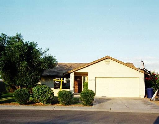 3 BDRM, 2 BA HOME IN BEAUTIFUL NEIGHBORHOOD*CHARMING ELEVATION W/RED BRICK FRONT PATIO TO ENJOY OUR AZ SUNSETS*GREAT FLOORPLAN W/SEPARATE FORMAL LIVING RM & FAM RM*NICE KITCHEN OPENS TO A COZY FAM RM W/BRICK FP*VERY QUIETLY LOCATED AT END OF STREET WHICH GIVES THIS HM A LARGE OVERSIZED LOT*NICELY LANDSCAPED FRONT & BACK YDS ON DRIP SYSTEM*NEW CEILING FANS & KIT FLOORING*2-CAR GARAGE*EXCELLENT LOCA- TION*CALL FIRST, LV MSG*USE LOCKBOX ON HOSE BIB*DOG IN BACKYARD, DON'T GO IN