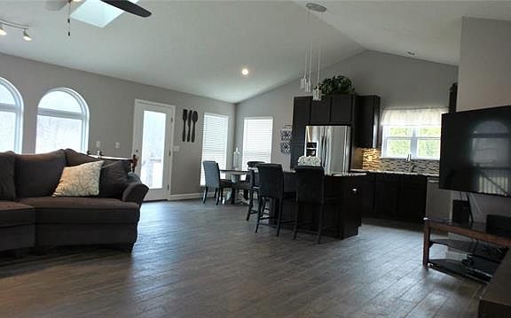 Fantastic golf course view w/ great living space featuring custom updates and expansive open areas, atrium windows and vaulted ceiling that showcase the #3 green off the backyard. 3 beds and 2 full baths on the main w/ newly renovated and expansive open living, dining and kitchen - all new stainless appliances, granite counters and new wood grain porcelain flooring. Large master suite w/ walk-in closet. The new main bath features his and her sinks, glass shower enclosure and classic tile work. 2 additional bedrooms and another full bath on the main floor are also freshly updated. The light and airy lower level features full-length windows. The bar is perfect for entertaining including: custom concrete bar top and back, recessed lighting, sink and mounted TV. There is plenty of room to enjoy the upper deck or lower patio area from the walk-out to a nice flat yard on the golf course. A 4th bedroom and new 3rd full bath plus a large storage area finish this great LL space.