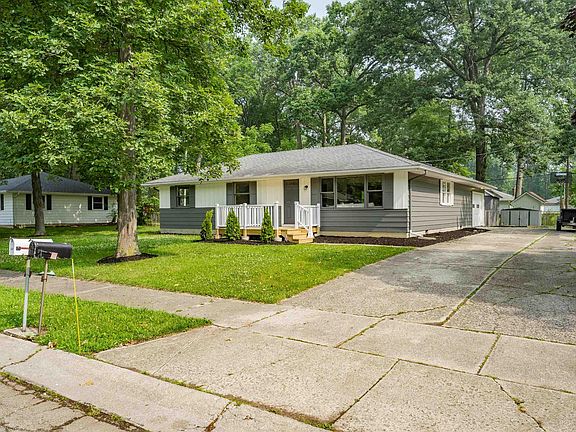 Fantastic, completely remodeled move-in ready ranch with a large enclosed back yard! Are you ready to take possession & have your best summer yet? This 3 bedroom, 2 full bath residence would make an excellent home, rental or investment property! Located in the established Northwest Lima Woods neighborhood just north of W Cook Rd, in a quiet & peaceful area with minimal through traffic on a tree-lined street & nestled on a generous 0.33 acre lot, this stunner is waiting for you to turn the key & start making memories here. You might never guess it was built in 1968 as it has been newly refreshed & renovated from outside in! Attractive exterior looks classic & stately with shutters, dark vinyl siding, tidy yard & recently mulched beds ideal for seasonal planting. Oversized cement driveway leads back to attached 1 car garage with a brand new raised wood deck beckoning you towards the front door. Inside you’ll find a bright & welcoming atmosphere complemented by trendy & aesthetically pleasing wood flooring, crisp white walls & immaculate overall appearance. Inviting open concept layout features a big living area with a very modern electric wall fireplace, floating exposed wood mantel & tons of natural light from picture windows. Stylish central island with seating separates living from kitchen with quartz countertops, brushed gold hardware & sink. Chef’s delight kitchen really is the central heart of this floor plan, boasting SS appliances, tile backsplash, track lighting & an extra long wrap around counter also with seating that separates the dining & bonus area on the other side. Extended space on far side of kitchen can be used as a family/rec/home theater zone and/or dining with garage door access & sliding glass doors to back patio. Sizable primary bedroom includes en suite bath with tub/shower combo, updated vanity & framed mirror. Remaining 2 bedroom are both comfortably sized with ample storage throughout; main shared bath also has updated vanity + mirror with walk-in shower & laundry hookups. Back yard has private feel due to the many tall trees providing shade & coverage, & is fenced in allowing for lots of outdoor fun & activities. Free standing shed with matching color scheme will keep all your yard tools & toys within easy reach. Super convenient area means easy access to Lima Rd, minutes from I-69 & Dupont Rd with plenty of shopping, dining & grocery options nearby.