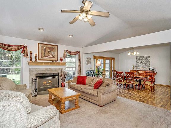 What a beautiful custom-built home with a gorgeous back yard oasis - feels like you are on vacation right in your own backyard! Exceptional appeal with stylish gray and white newly painted exterior with a pop of color to welcome you at the front door. This fabulous open floor plan is both impressive and inviting, with 9' vaulted ceilings and brilliant windows bringing natural light and picturesque backyard views into the main living areas and master suite. The spacious living room includes a striking focal fireplace and is completely open to the huge dining and kitchen areas. The dining area has awesome space for large furniture and offers captivating backyard views through the expansive French doors, sidelights and retractable screen door. The impressive kitchen showcases great cabinet and counterspace with custom cabinets, granite countertops, pantry, double ovens, center island with 5-burner gas range with downdraft, prep sink, and eating bar area, with stunning wood floors throughout the kitchen and dining room areas. Retreat to the master suite with a large bedroom, vaulted ceiling, more great backyard views, and a master bathroom with a relaxing whirpool tub, separate Onyx shower, tile floor, large linen and storage cabinet and walk-in closet. The main floor also includes two additional bedrooms and an adjacent bathroom with tub/shower and granite-top vanity. The basement features an outstanding layout with a huge family room and recreation area next to the wet bar with wood flooring, eating bar, and mini fridge. So much space in this home with two additional large bedrooms and a third bathroom with tub/shower and a tile floor. The spectacular backyard starts with the oversized French doors to the 15' X 10' covered deck that steps down to a 26'5" X 13' stamped concrete patio area accented with a beautiful landscaping area. Relax and enjoy the private backyard or entertain in style in the 36'6" x 13'6" Pergola area with striking stamped concrete and lighted water feature. The stamped concrete continues around the backyard to the gate, providing easy walkways to the garage and front of the house. The exterior also includes lush landscaping areas, mature trees, privacy fence, sprinkler system and irrigation well. This is an outstanding home with beautiful indoor areas and amazing outdoor living areas to enjoy with family and friends!
