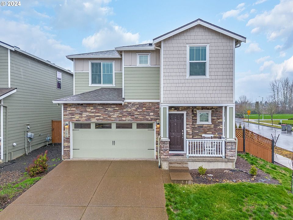 Just minutes to downtown McMinnville, enjoy the convenience of charming Jay Pearson Neighborhood Park and the Michelbook Country Club. Assumable 2.875% USDA loan! Buyer to due all due diligence with eligibility. This fantastic home offers an exquisite blend of comfort and elegance. Equipped with custom upgrades including a full suite of energy-efficient kitchen appliances, quartz countertops and brushed nickel hardware and fixtures. The main floor open plan enhances natural light flow. Enjoy the spacious great room right off the open-concept kitchen, an inviting atmosphere for hosting gatherings. The second-floor layout is designed for both privacy and convenience. A versatile bonus room right off the landing can be another family room, play room or fitness area. The primary suite is positioned away from the other bedrooms which allows for a more secluded and retreat-like experience. Hallways create a buffer zone between the primary suite and the additional bedrooms. This layout acknowledges the importance of giving each occupant their own space while still ensuring easy access to bedrooms and shared areas. You can move in worry-free, with the peace of mind knowing that the home is not only beautiful but also meticulously maintained.