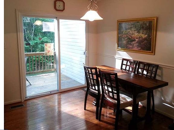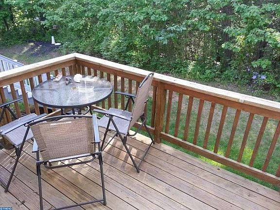 This great home home has a wonderful balance of modern easy care and a cul-de-sac location backing to woods. Main Level features beautiful wood flooring from the entry in the expansive living room through the large eat in kitchen. Double basin sink, Island with breakfast bar, pantry closet and abundant lighting make the kitchen a bright and inviting center of the home. The raised deck off the kitchen offers outdoor living space accessed through sliding glass doors which offer views of nature regardless of the weather. Upper level has a generous main bedroom suite with full bath and walk in closet. There is a good sized hall bath and a comfortably sized second bedroom. The third bedroom provides a nearly perfect combination office and guest room through use of a convertible sofa bed. Finished basement living space includes a large family room with Egress window. Combination Laundry/Storage room offers terrific storage capacity. Heating and cooling facilities are in their own room. There is also a large closet with organizer and more storage under the stairs. One Year HMS Home warranty for buyer included at seller expense. Don't miss your chance to own this excellent value!