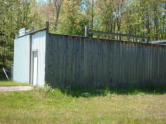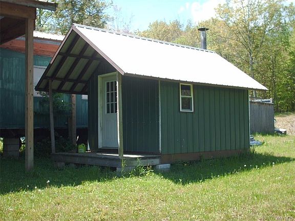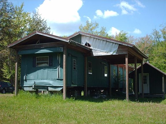 1980 mobile home on 12.6 acres of mostly wooded property. Pole barn type roof structure has been built over singlewide mobile. Two detached outbuildings. Mobile home is not in habitable condition. Property is being sold in "as-is" condition, no information on septic or well. Purchaser should contact Cattaraugus County Health Dept.